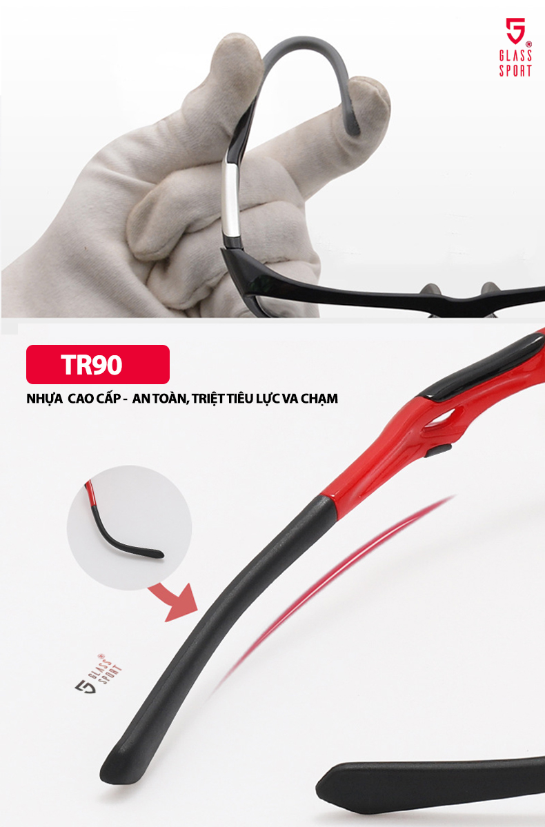 Chất liệu nhựa Tr90 cao cấp dùng trên các loại kính thể thao, giúp chống oxi hóa, an toàn cho da, chống gãy kính khi xảy ra va chạm tốt.